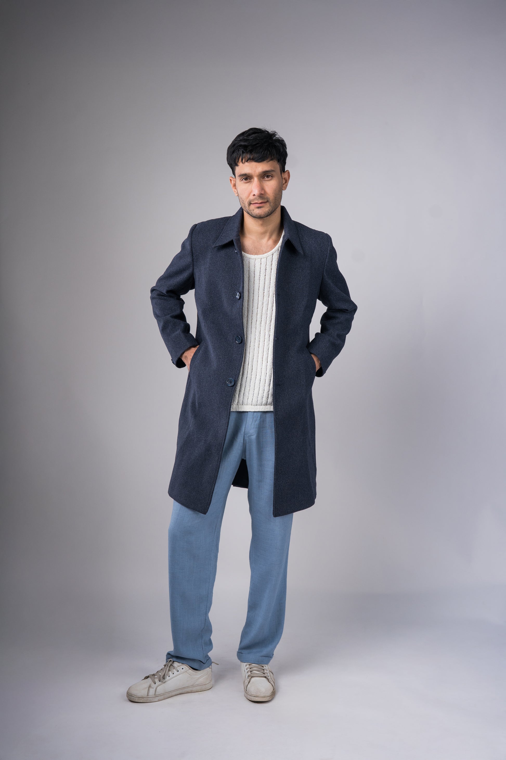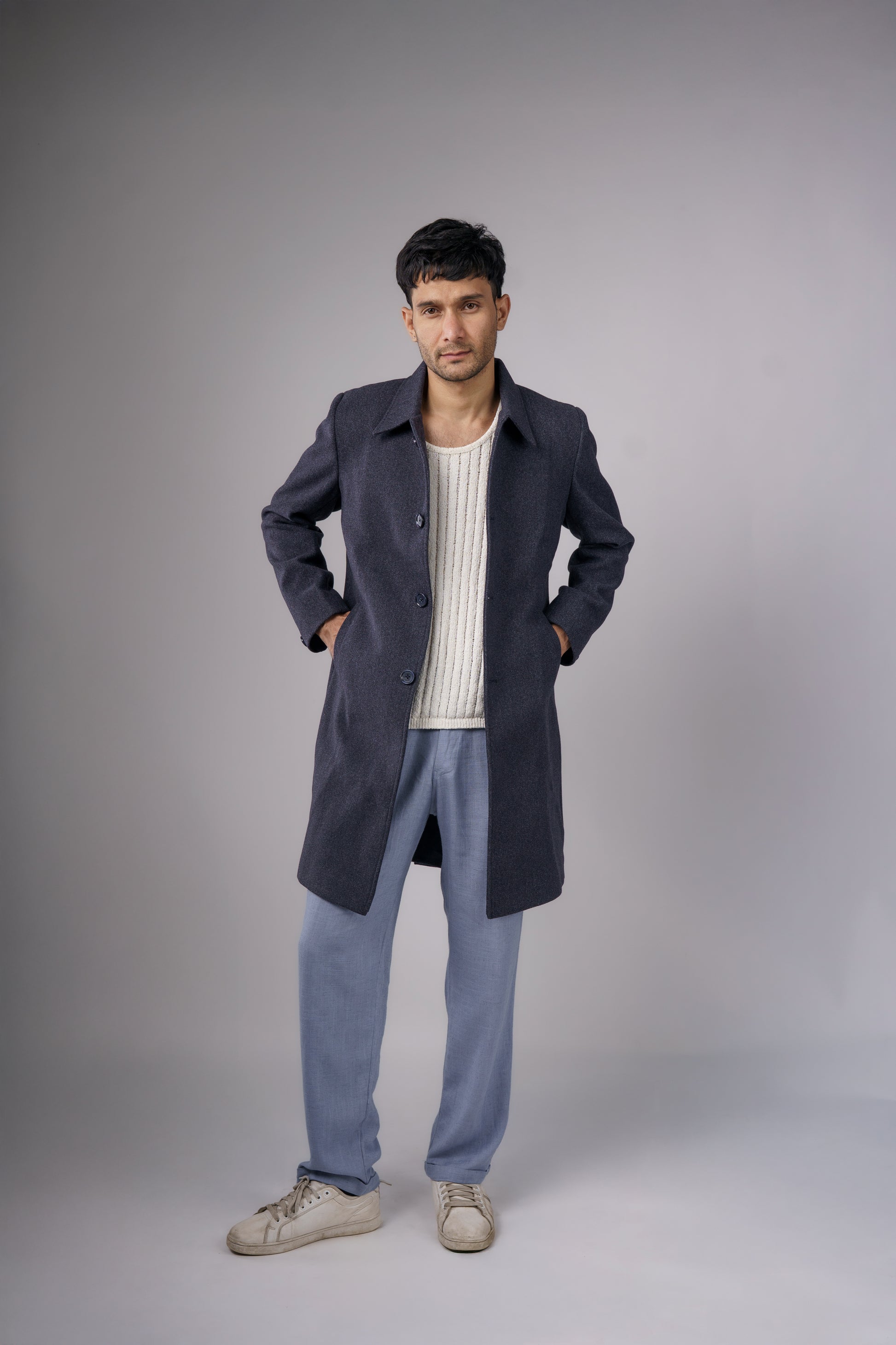 The silhouette stays tailored yet easy, with clean lines, discreet pockets, and a fall that grazes the knee for an elongated, polished profile. A piece meant for unhurried commutes, late-evening dinners, and days that call for quiet confidence